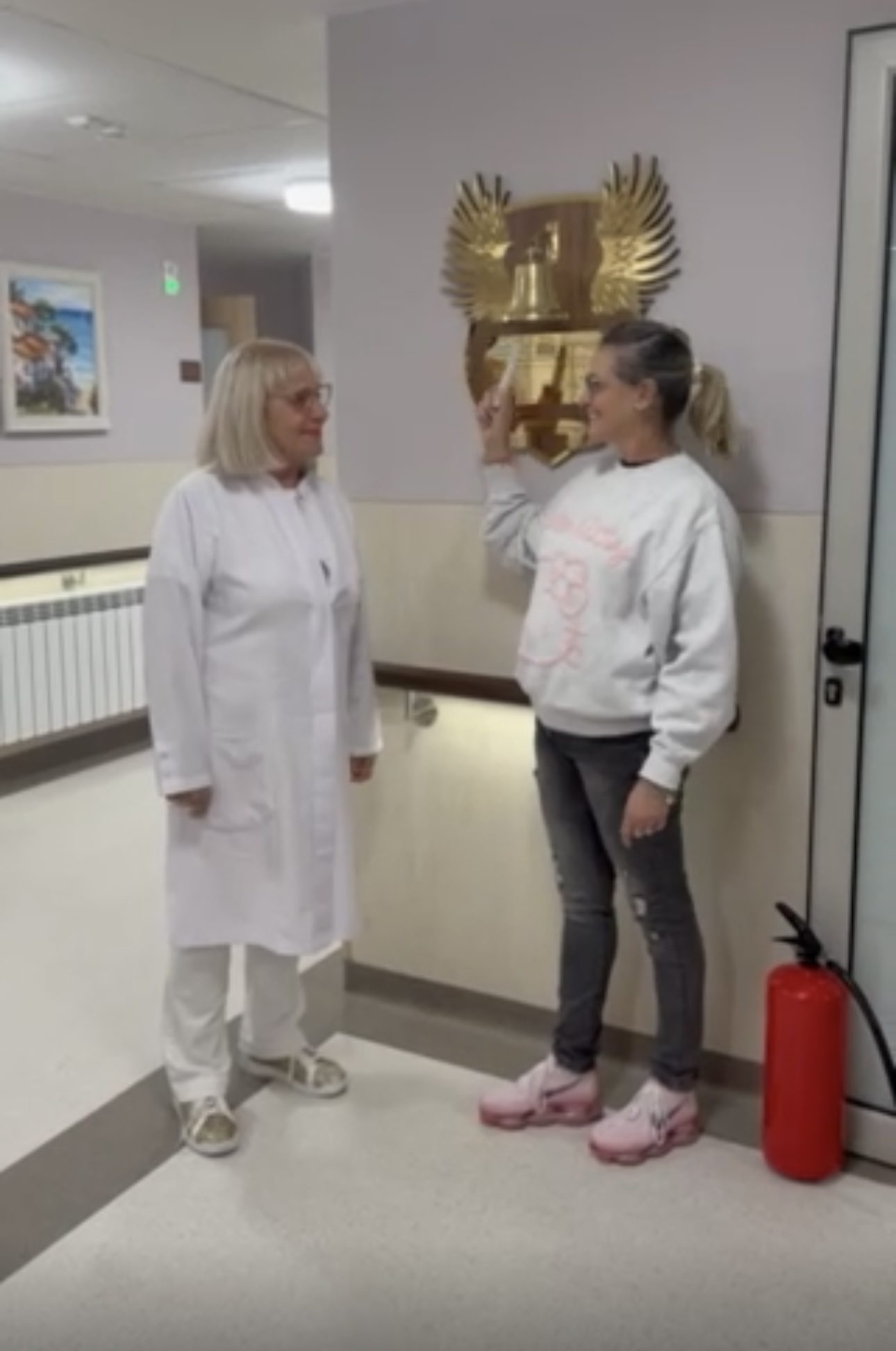 Сълзите в очите ѝ, когато камбаната прозвъня са потвърждение, че дългият терапевтичен път е преминат успешно, а за екипа на Клиниката по медиицнска онкология победата над болестта е заслужено удовлетворение.
