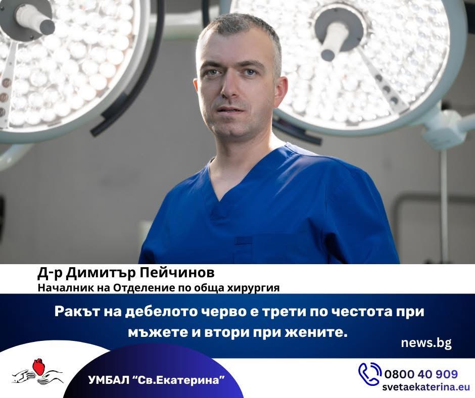 „Колоректалният карцином е коварно заболяване, защото в ранните си стадии често протича без изявени симптоми“, обясни в интервю за News.bg д-р Димитър Пейчинов, хирург в УМБАЛ „Св. Екатерина“.