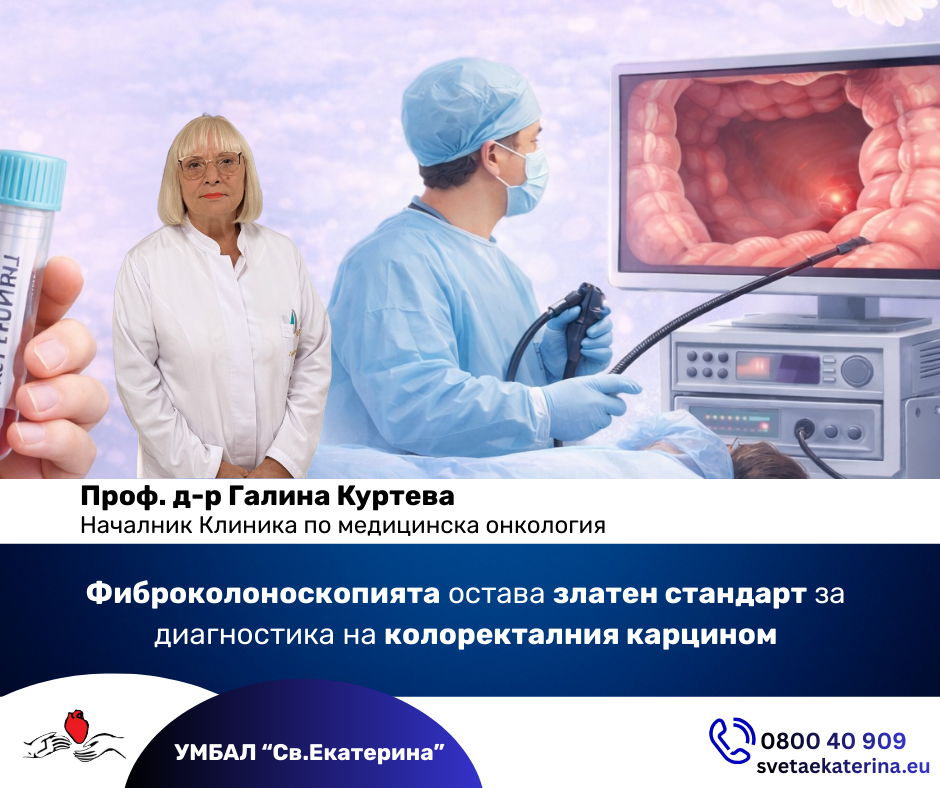 Фиброколоноскопското изследване е единственият сигурен метод за поставяне на диагнозата колоректален карцином. Това заяви проф. Галина Куртева, началник на Клиниката по медицинска онкология в УМБАЛ „Св. Екатерина“, в интервю за БНР по повод Световния ден за борба с рака.