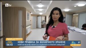 Повече по темата може да видите в репортажа тук: https://btvnovinite.bg/predavania/tazi-sutrin/novi-pravila-za-bolnichnoto-hranene-kakvo-shte-vkljuchva-menjuto-za-pacientite-v-lechebnoto-zavedenija.html